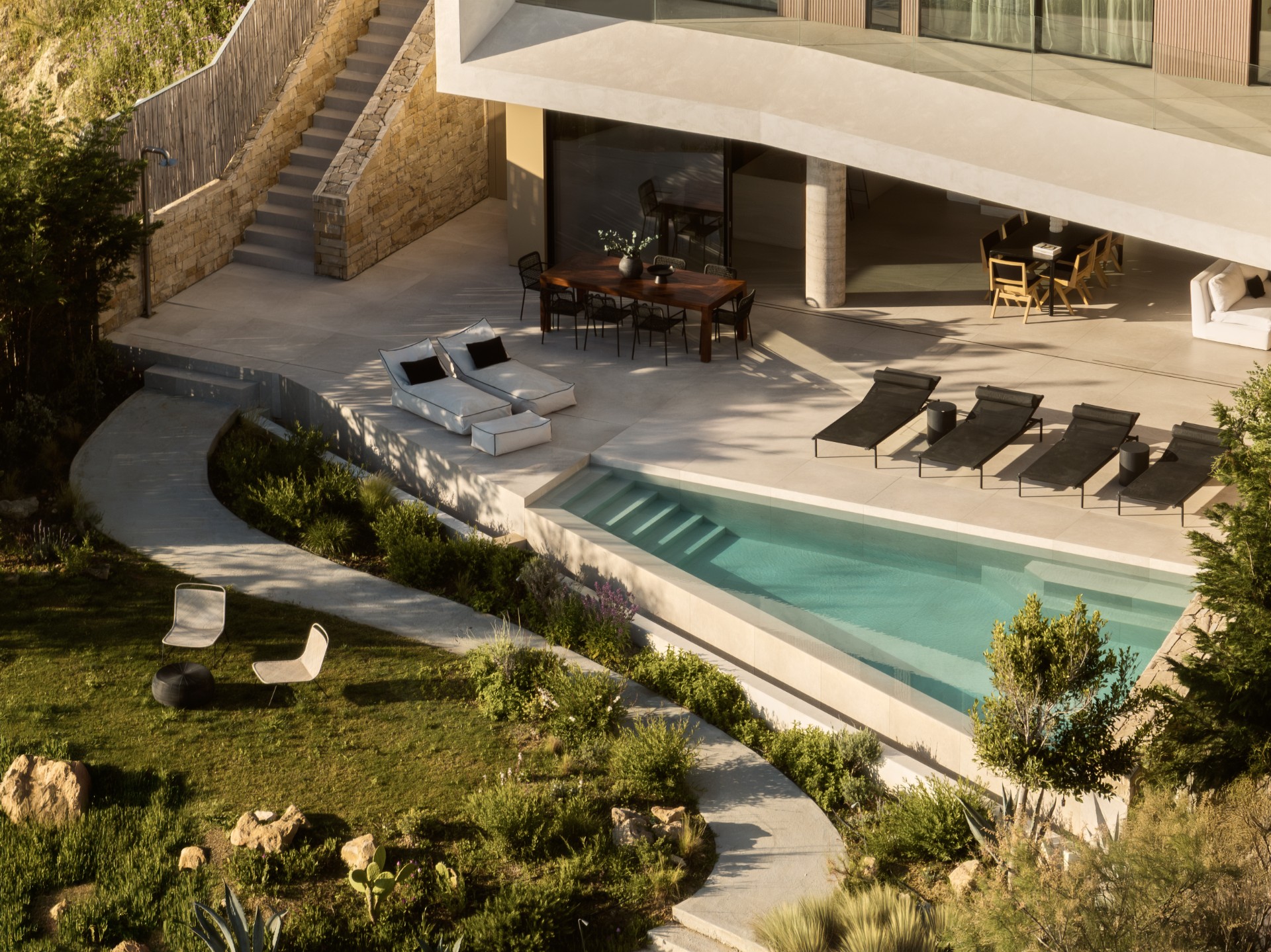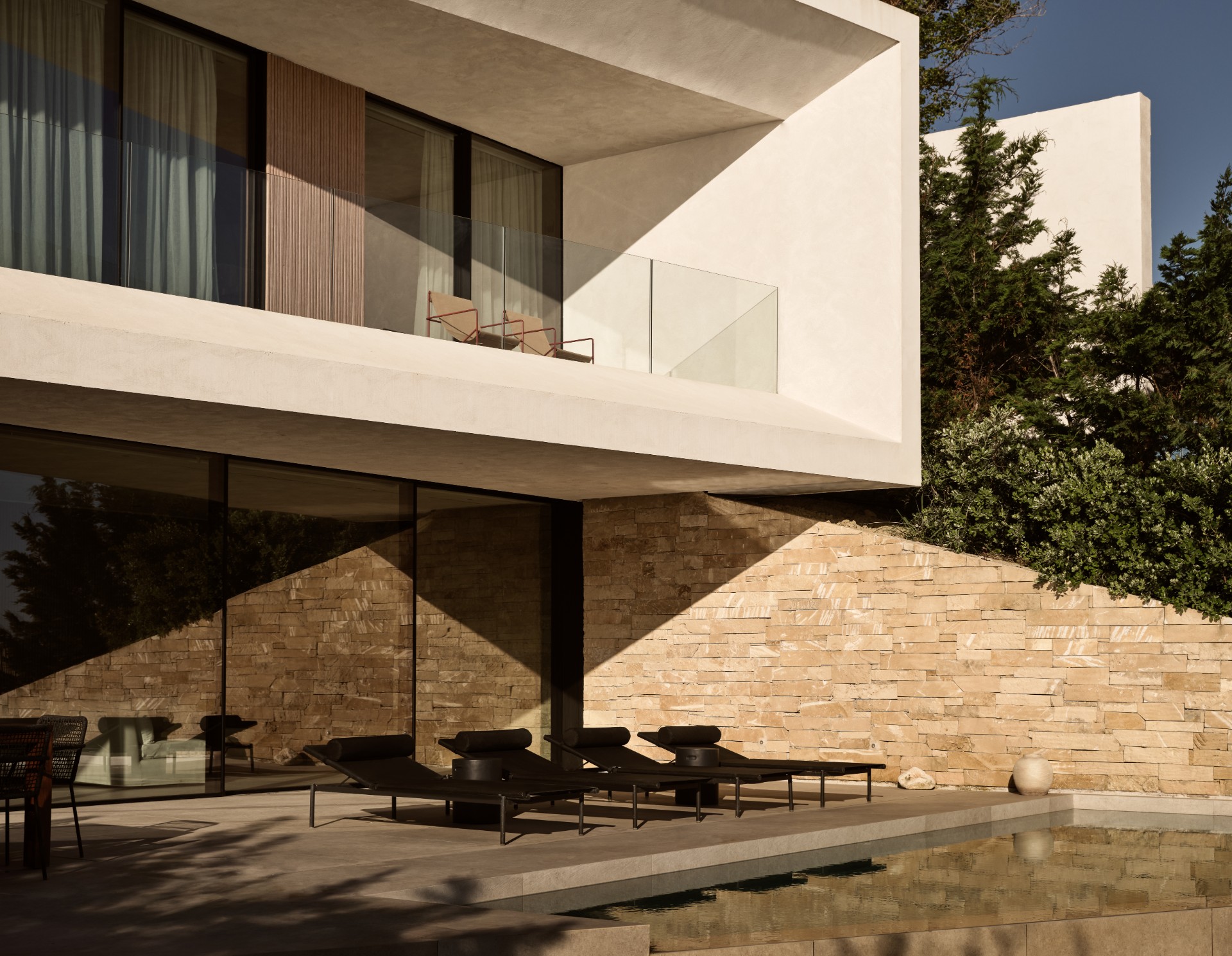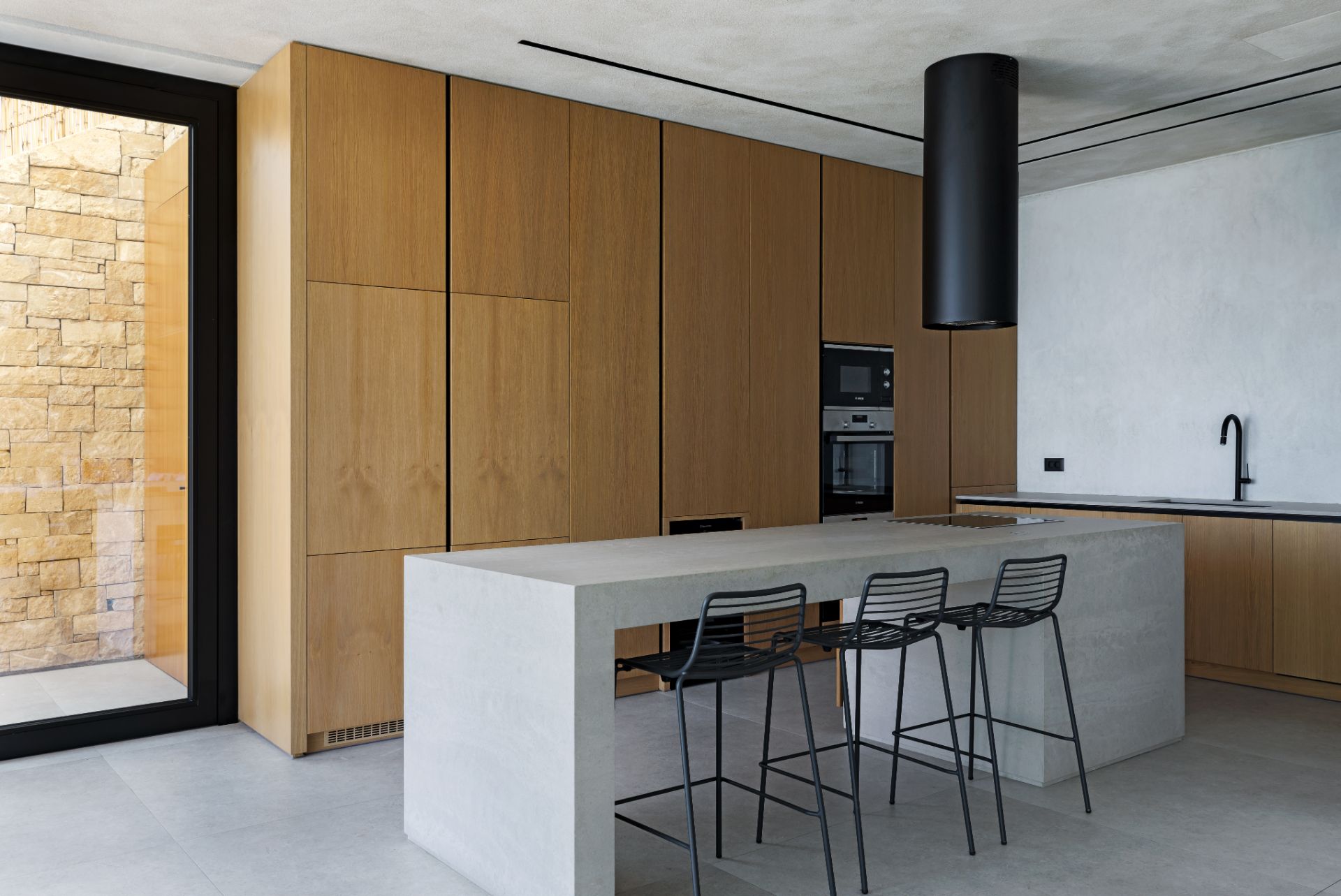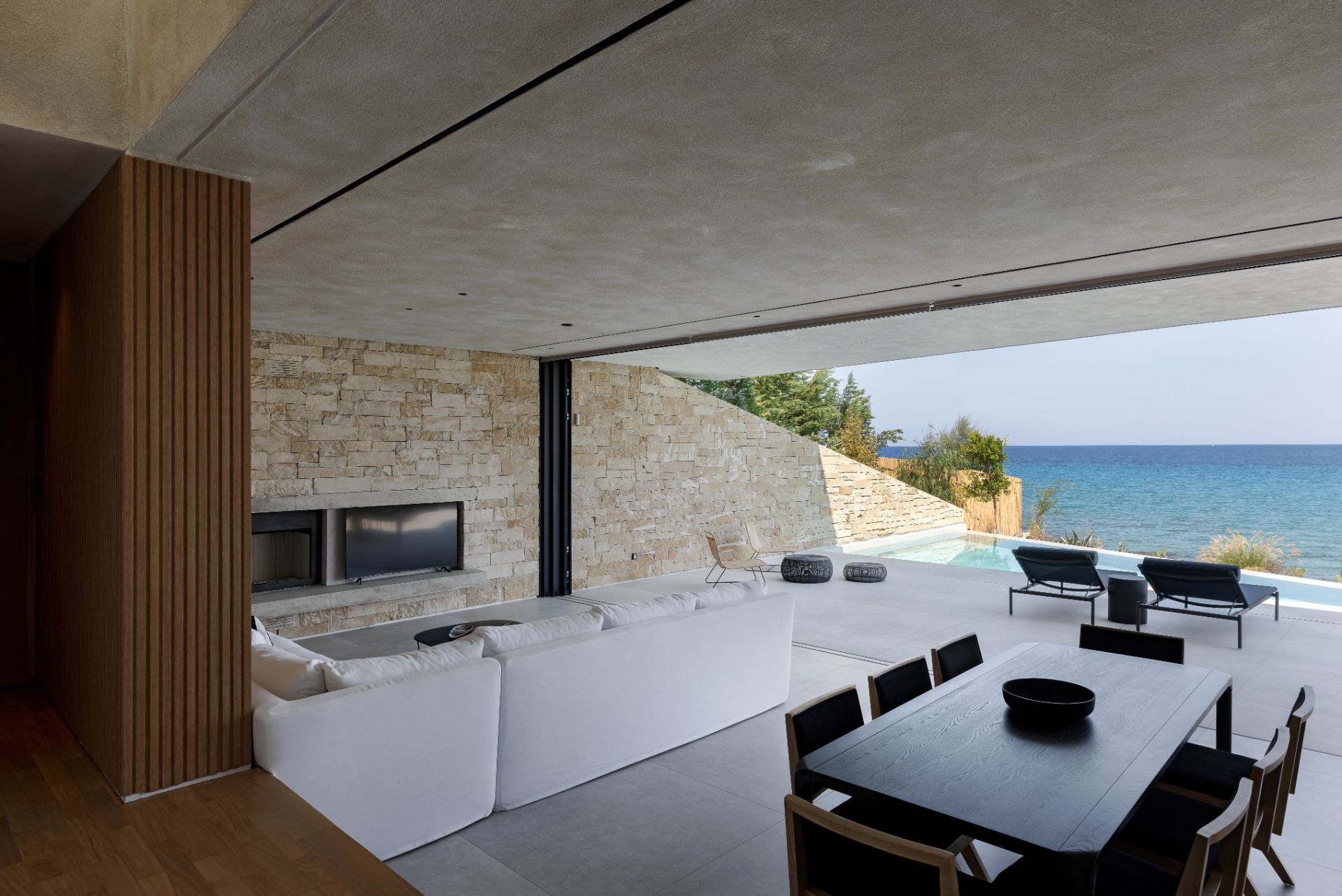 The upper level of the villa showcases the well-appointed bedrooms. Balancing comfort and unique design, three of the bedrooms open up to a private balcony that overlooks the captivating sea, enhancing the serene ambiance of the space. The fourth bedroom does not feature a balcony or sea view. Each one is accompanied by its own private en-suite bathroom.