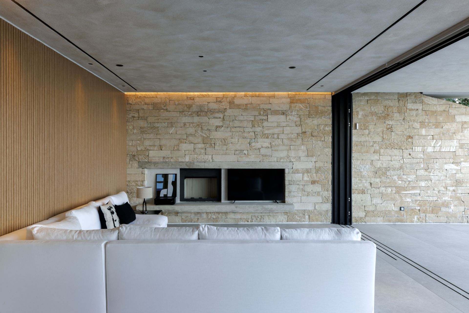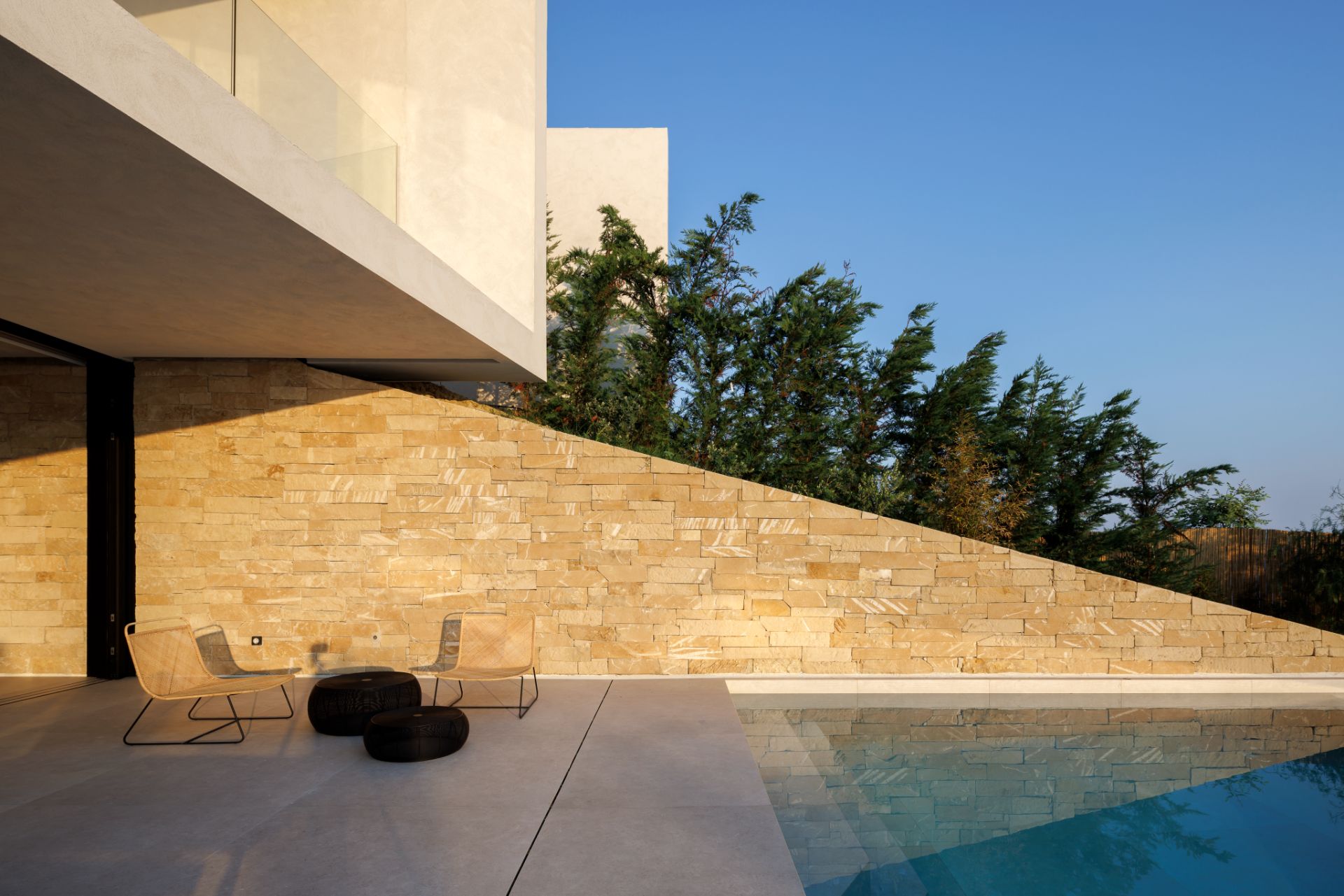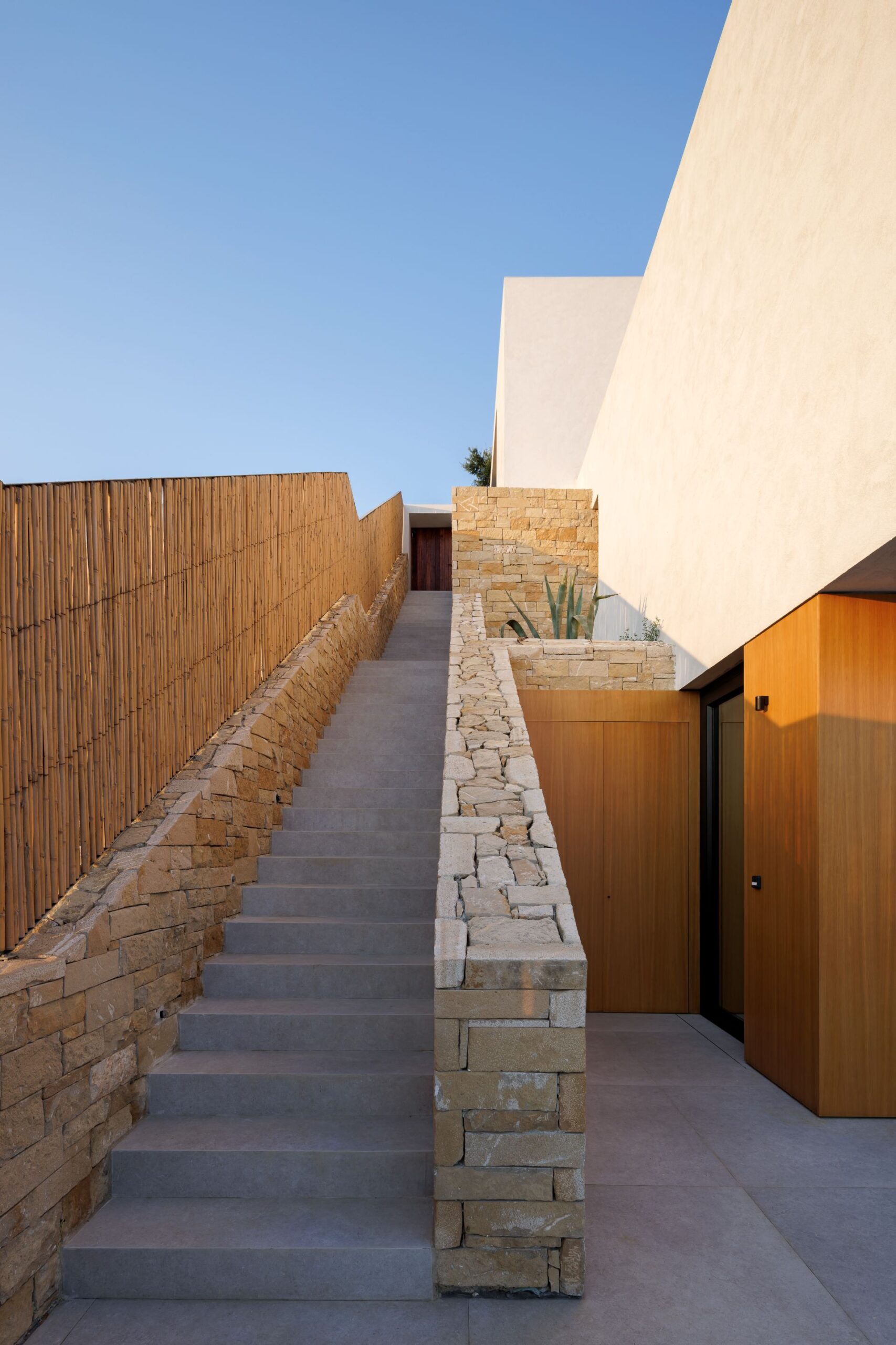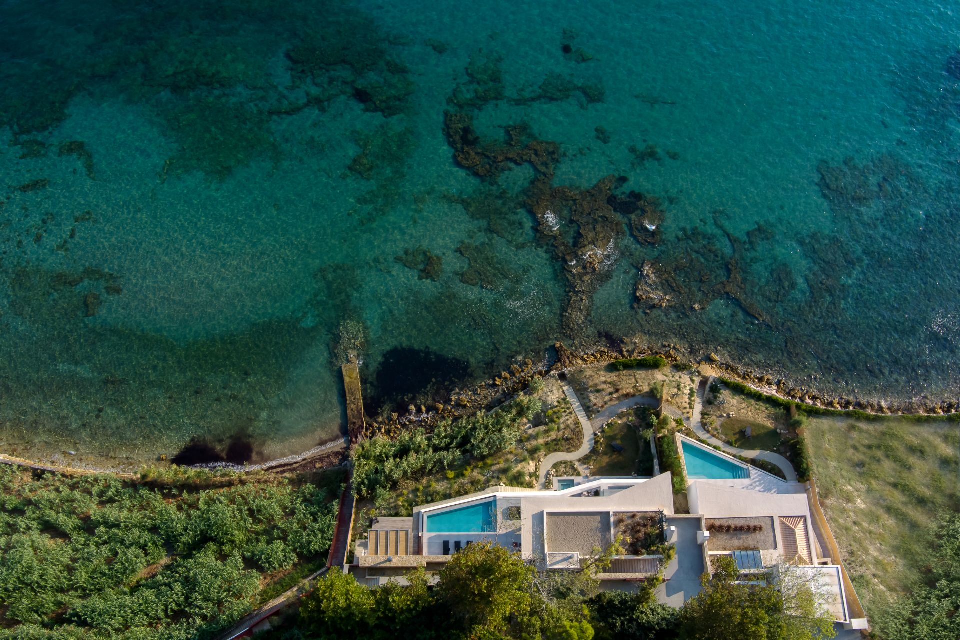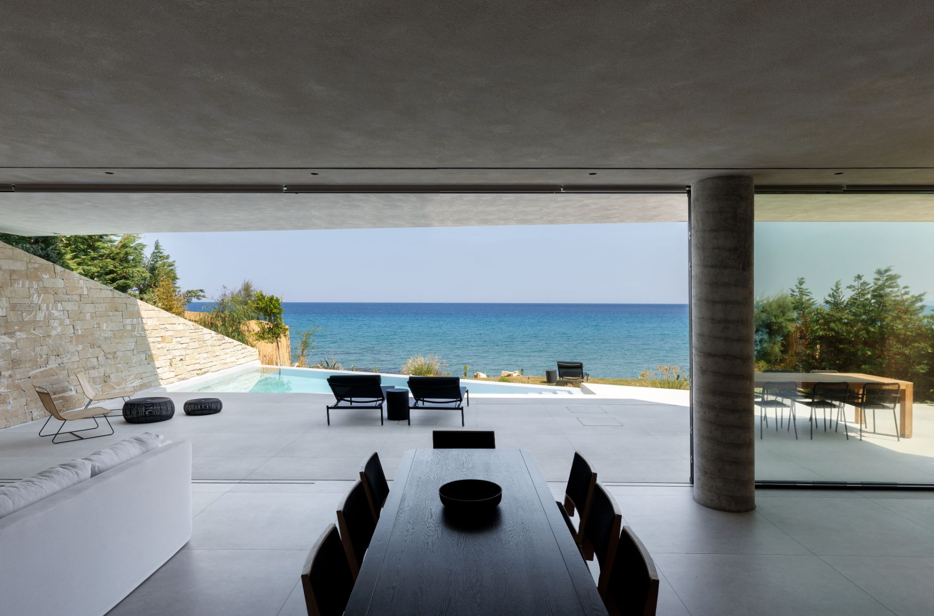 The upper level of the villa showcases the well-appointed bedrooms. Balancing comfort and unique design, three of the bedrooms open up to a private balcony that overlooks the captivating sea, enhancing the serene ambiance of the space. The fourth bedroom does not feature a balcony or sea view. Each one is accompanied by its own private en-suite bathroom.