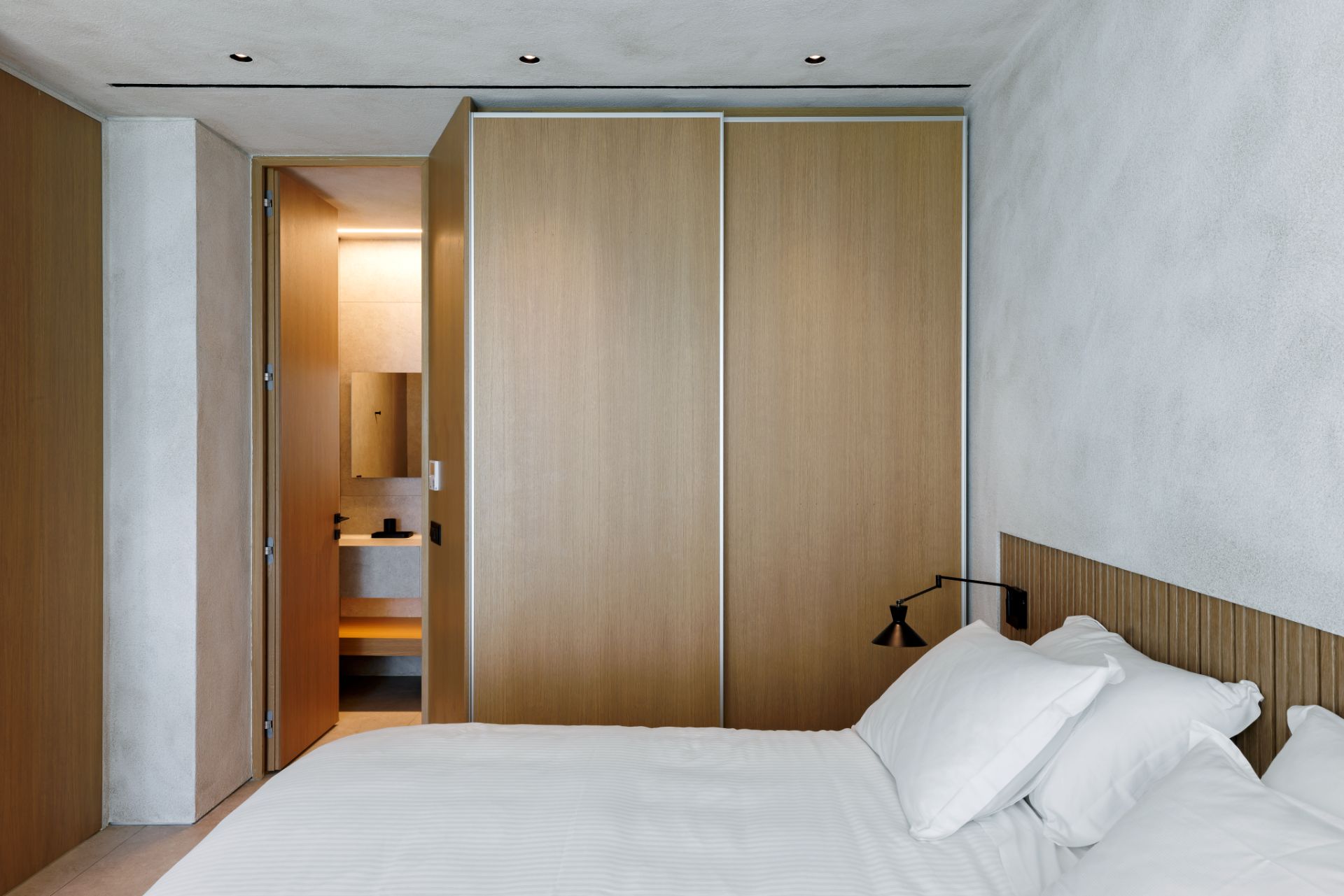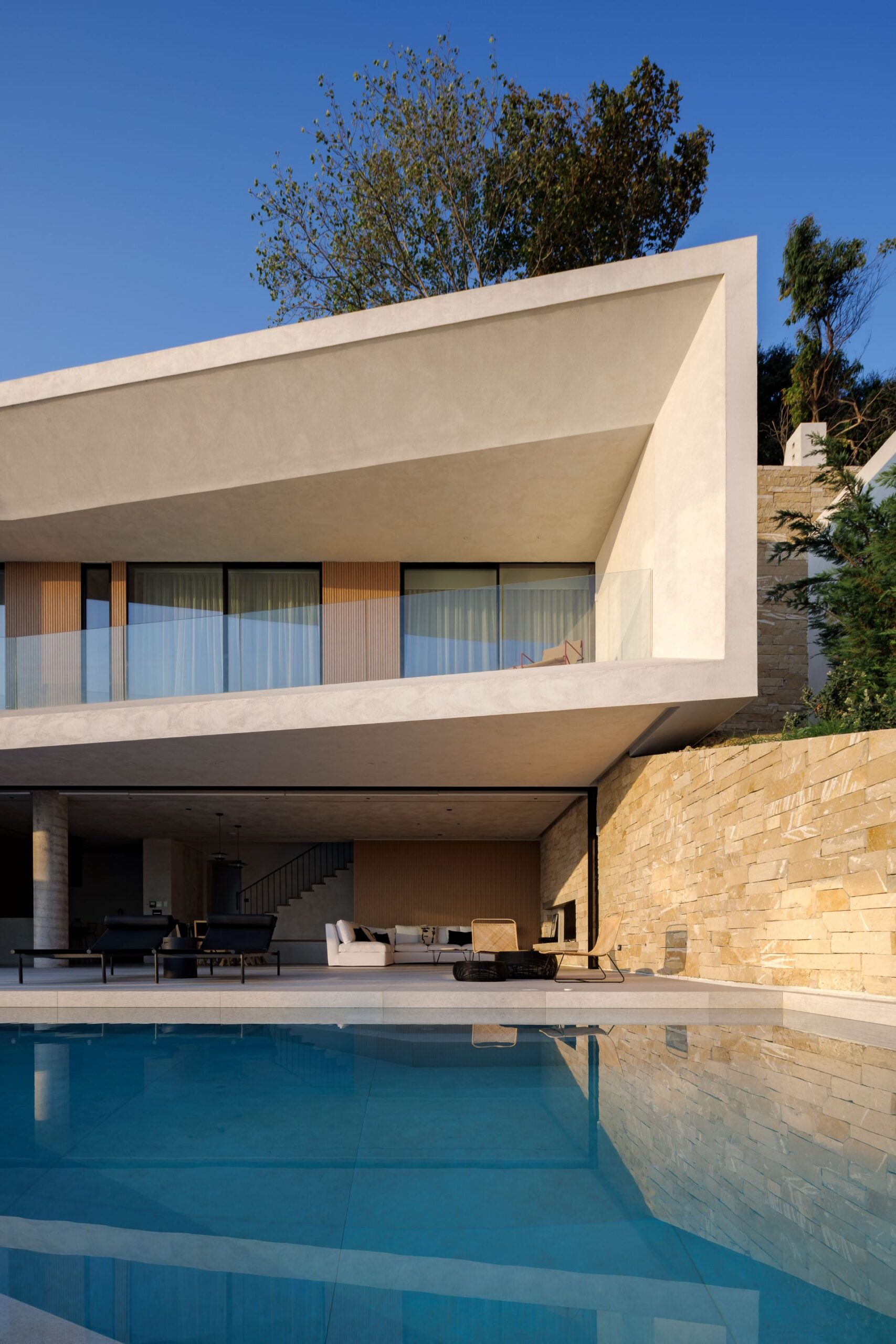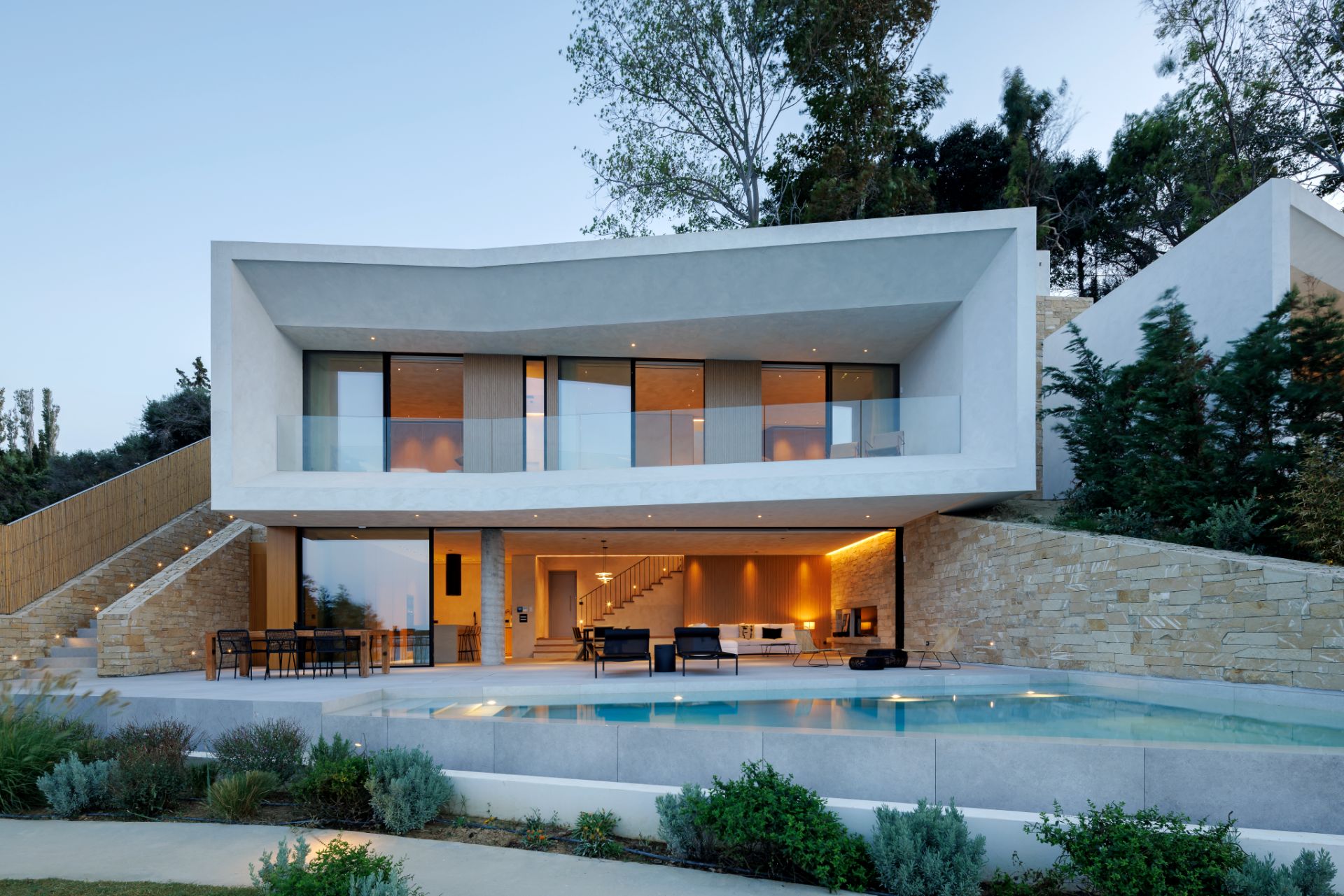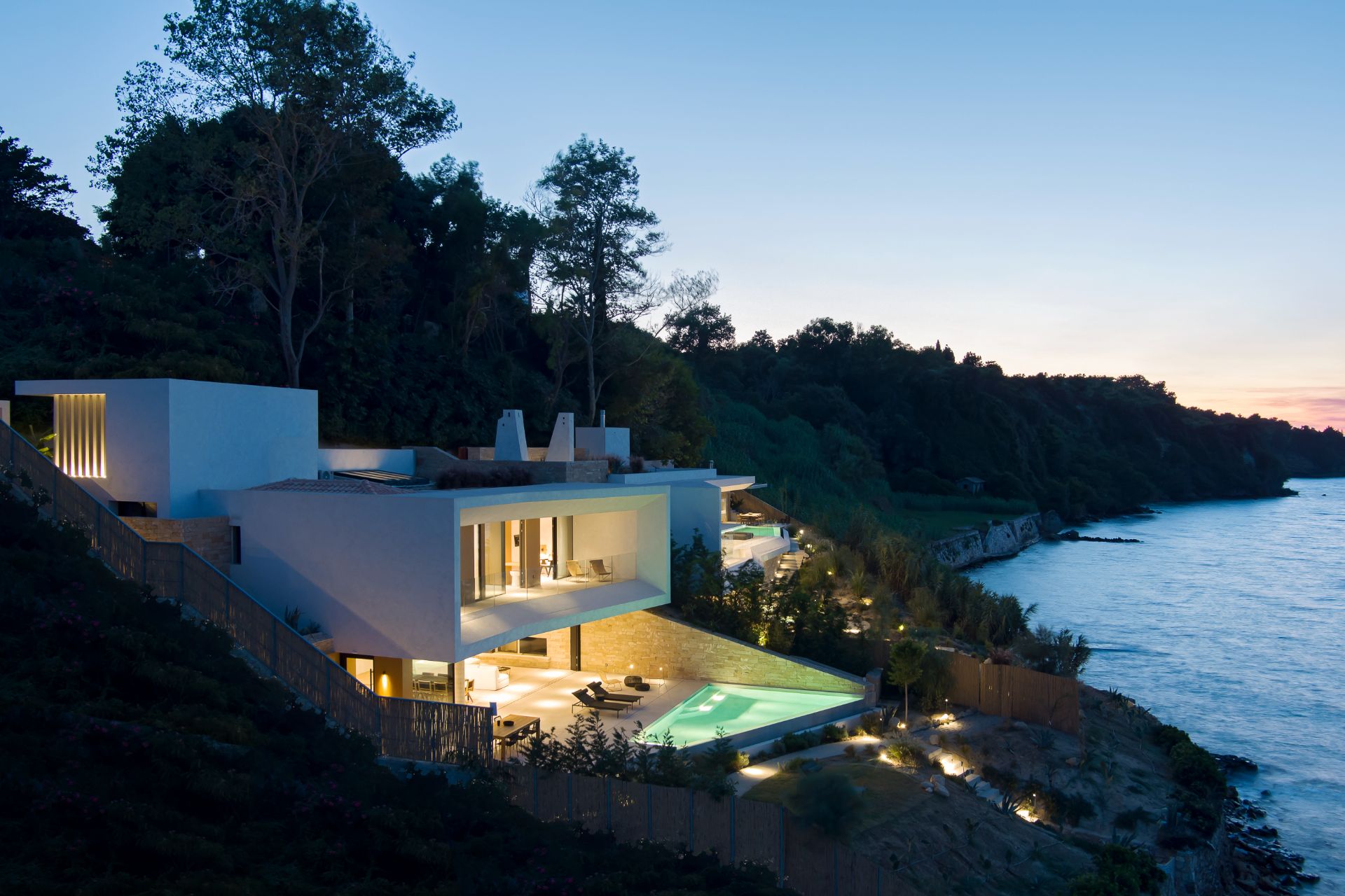 The upper level of the villa showcases the well-appointed bedrooms. Balancing comfort and unique design, three of the bedrooms open up to a private balcony that overlooks the captivating sea, enhancing the serene ambiance of the space. The fourth bedroom does not feature a balcony or sea view. Each one is accompanied by its own private en-suite bathroom.