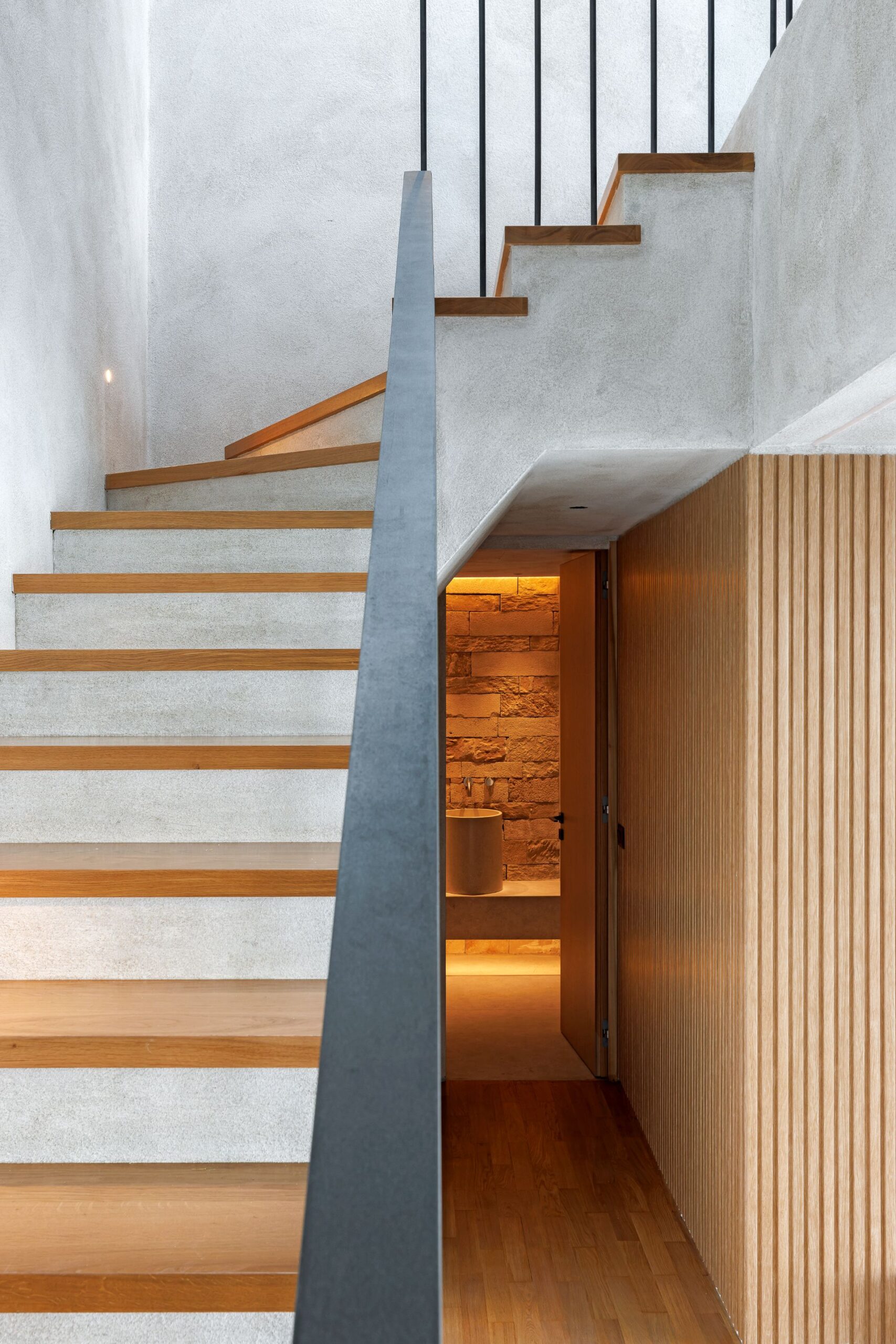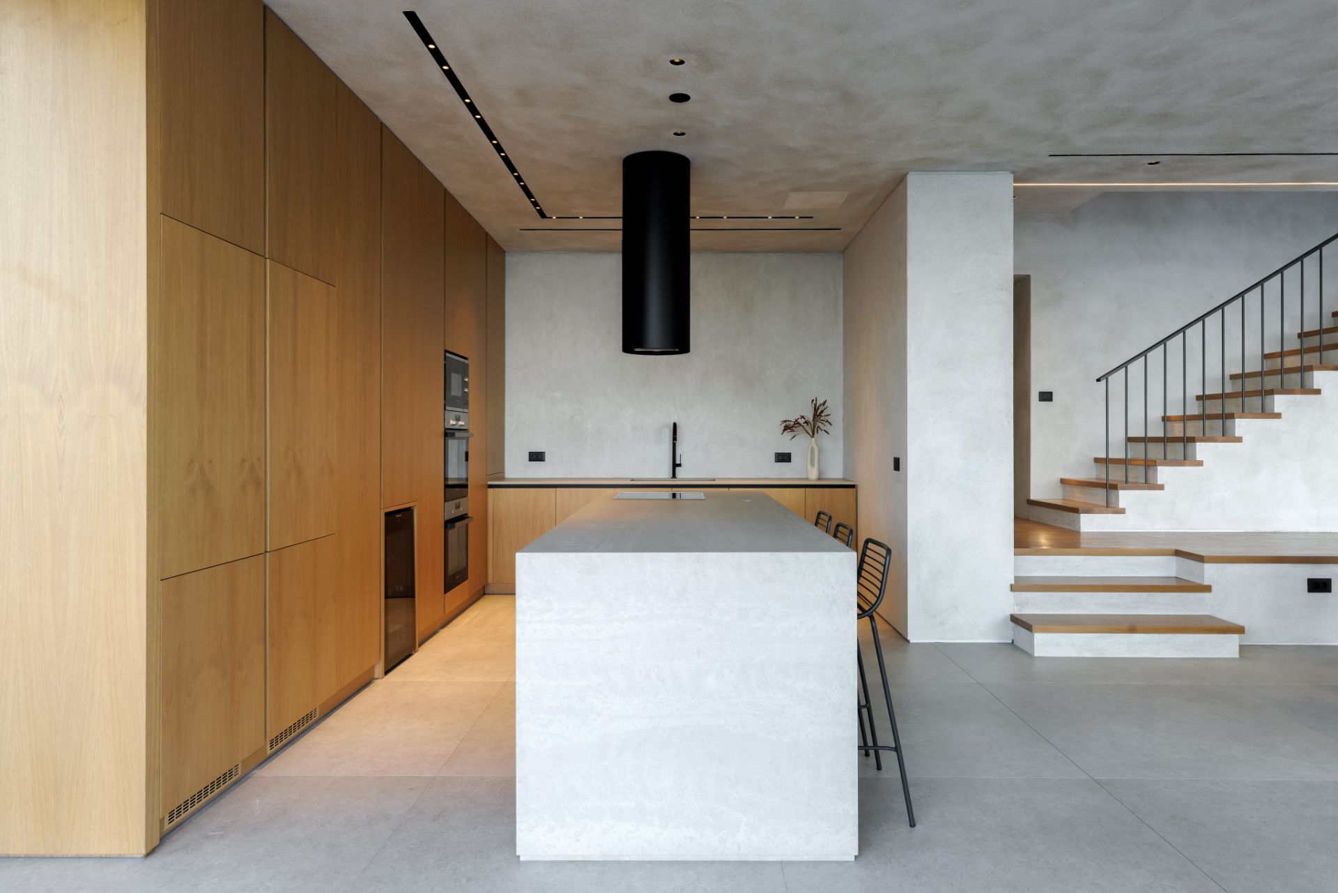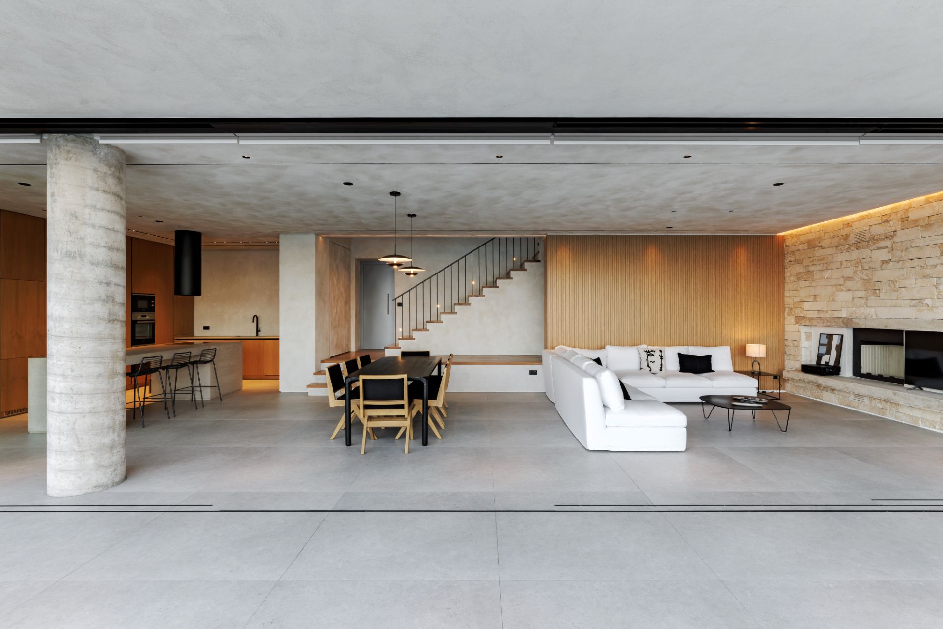 Upon entering through the lift or the stunning staircase, guests are welcomed into the beautifully designed living room seamlessly integrated with a fully equipped kitchen. This area is adorned with expansive windows that not only flood the space with natural light but also grant direct access to the inviting outdoor pool area. The blend of indoor and outdoor living is perfected here, allowing guests to relish in the stunning surroundings. Additionally, a shared WC is situated on the ground floor, catering to the convenience of all guests.