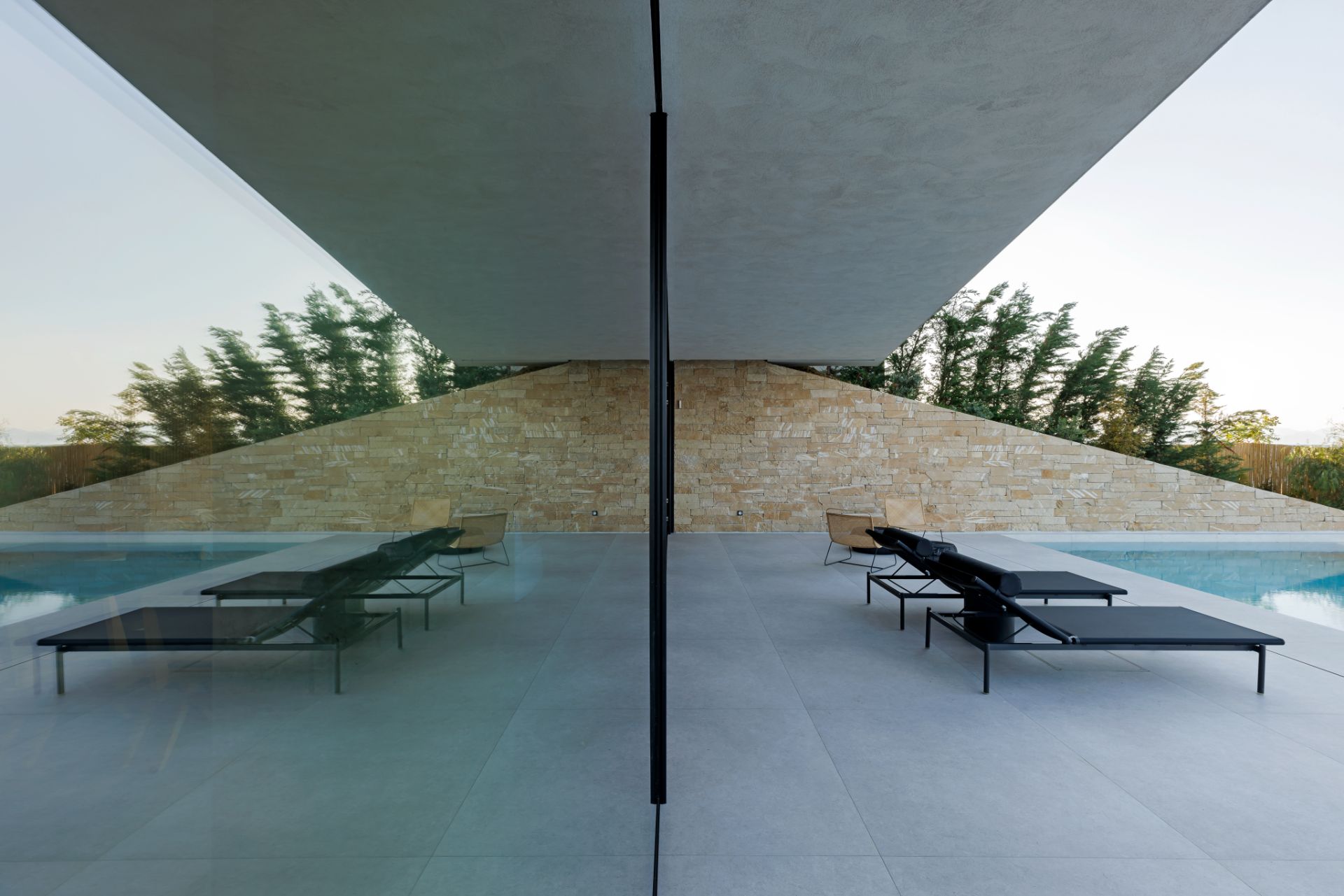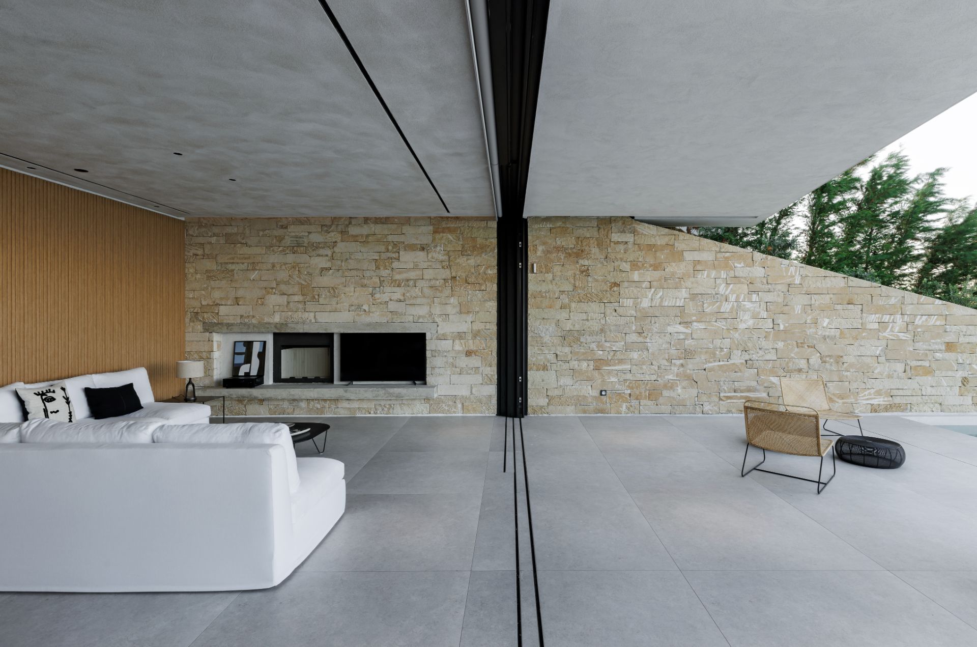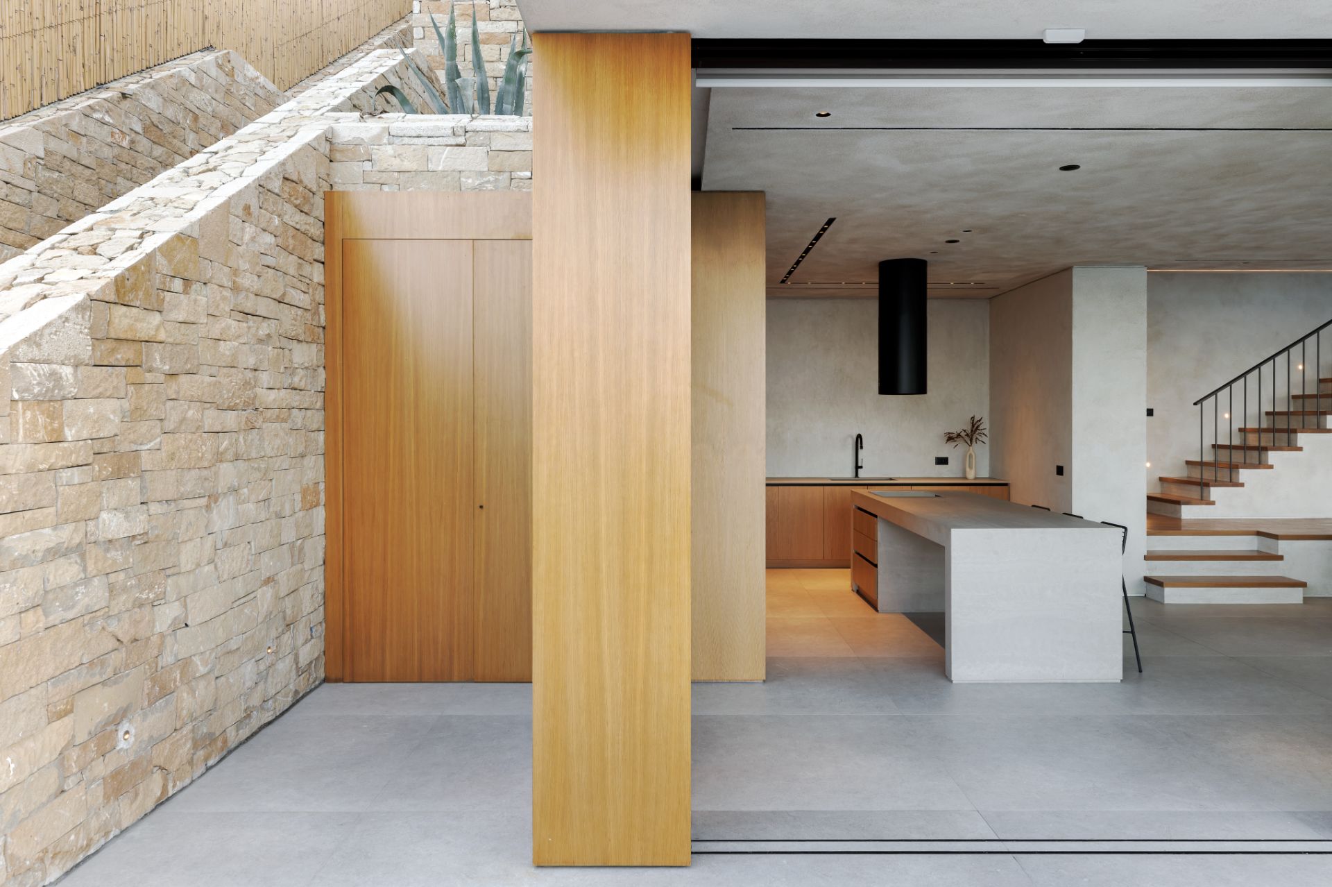 Upon entering through the lift or the stunning staircase, guests are welcomed into the beautifully designed living room seamlessly integrated with a fully equipped kitchen. This area is adorned with expansive windows that not only flood the space with natural light but also grant direct access to the inviting outdoor pool area. The blend of indoor and outdoor living is perfected here, allowing guests to relish in the stunning surroundings. Additionally, a shared WC is situated on the ground floor, catering to the convenience of all guests.