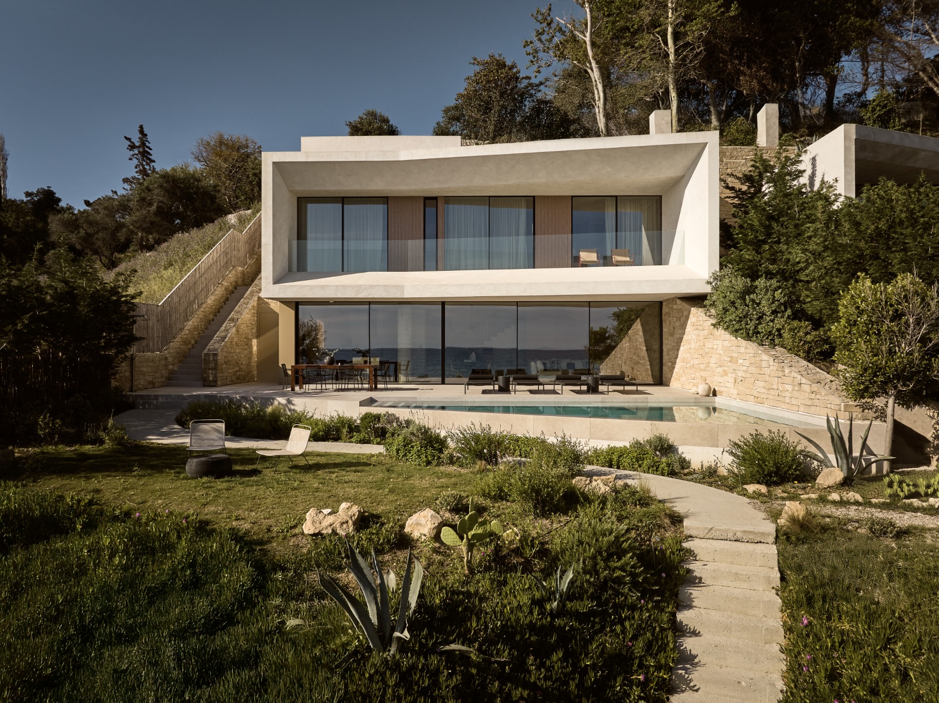 The villa’s outdoor area is a haven of relaxation and entertainment. It features a pristine swimming pool, complemented by sunbeds and umbrellas that invite guests to bask in the sun. A well-appointed seating and dining area provide the perfect setting for al fresco meals and gatherings. For those who appreciate culinary experiences, it houses a built-in gas BBQ and a dedicated dining space. The awe-inspiring sea view adds to the allure of the outdoor space.